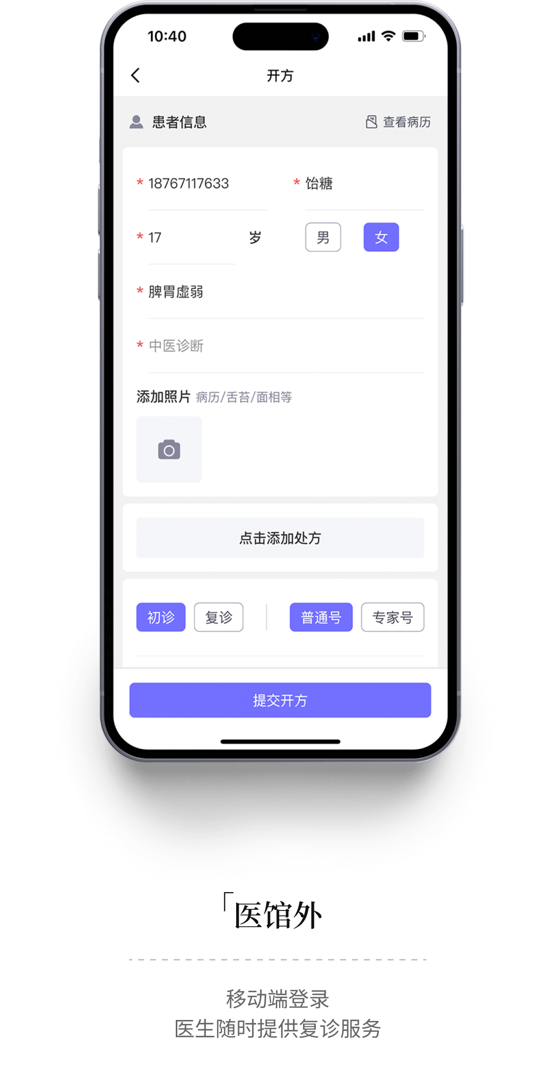 AI辅助诊疗,一键智能开方;内置处方大全,古今名方随查随导;支持设置处方模版,常用方剂快捷引用;历史病历轻松回查,复诊开方效率更高